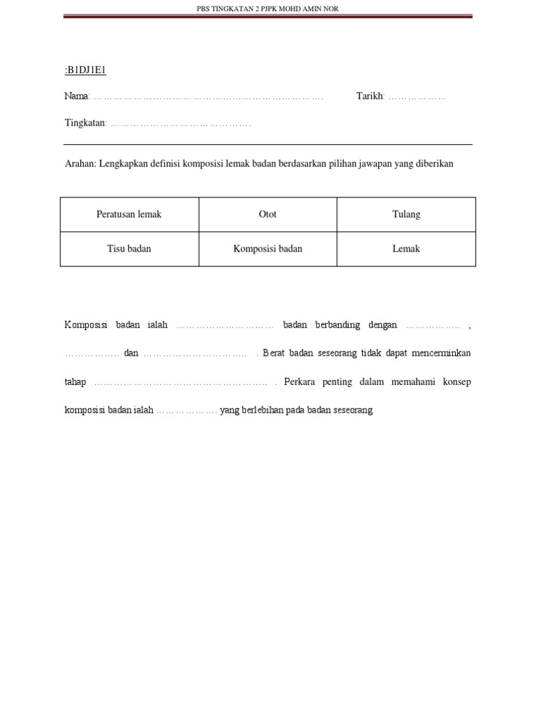 A Proses menguraikan tenaga yang berlebihan di dalam badan menjadi lemak. Koleksi Bank Soalan Ujian Tingkatan 5. 2182021 PJPK Tingkatan 2 Unit 5 Kriket.